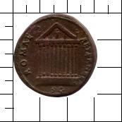 ROMAE AETERNAE // S C [= = // SENATVS CONSVLTO]. Decastyler Tempel mit Akroter- und Tympanonfiguren; im Perlkreis.